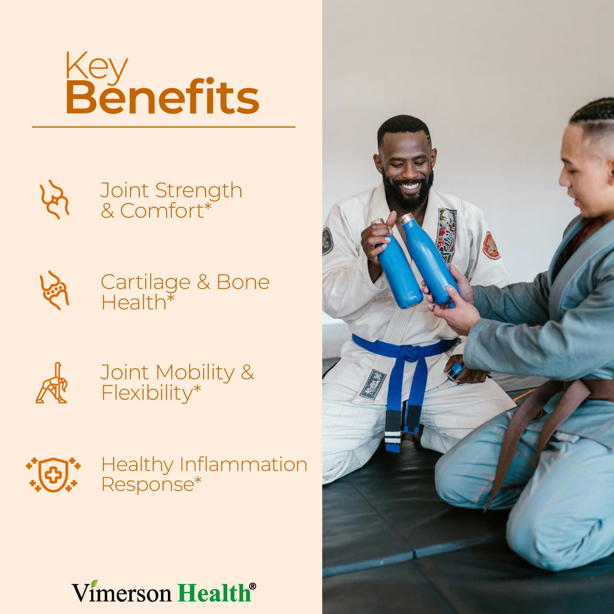 Product Benefit :: Premium Joint Support Supplement – Helps balance joint stiffness, support cartilage health, and promote flexibility for seniors, active adults, and individuals managing joint discomfort.*, Balanced Inflammation & Joint Relief – Boswellia and MSM help support the body's natural inflammatory response, making it ideal for post-exercise recovery and daily joint health maintenance.*, Cartilage & Connective Tissue Health – Glucosamine and MSM support collagen production and connective tissue strength, promoting joint durability and long-term flexibility.*, Advanced Joint Lubrication – With Hyaluronic Acid, an essential component of healthy synovial fluid, this supplement cushions joints for smoother, more comfortable movement.*, Trusted Formula – Made in the USA in a cGMP & UL-Certified Facility, this non-GMO, gluten-free, dairy-free, and soy-free formula is designed for busy professionals, caregivers, and those seeking a natural, effective joint solution.*