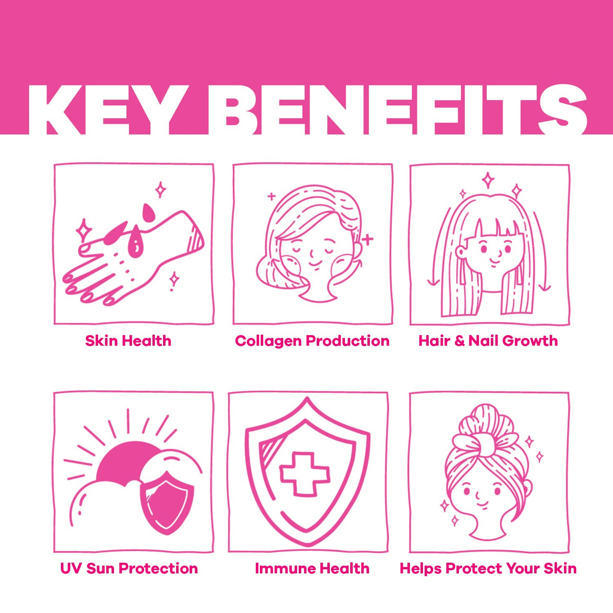 Promote collagen production and hair growth with GoBiotix Hair Skin and Nails Vitamin Supplement. Enriched with Biotin, Hyaluronic Acid, and essential minerals, this supplement supports healthy hair, skin, and nails.