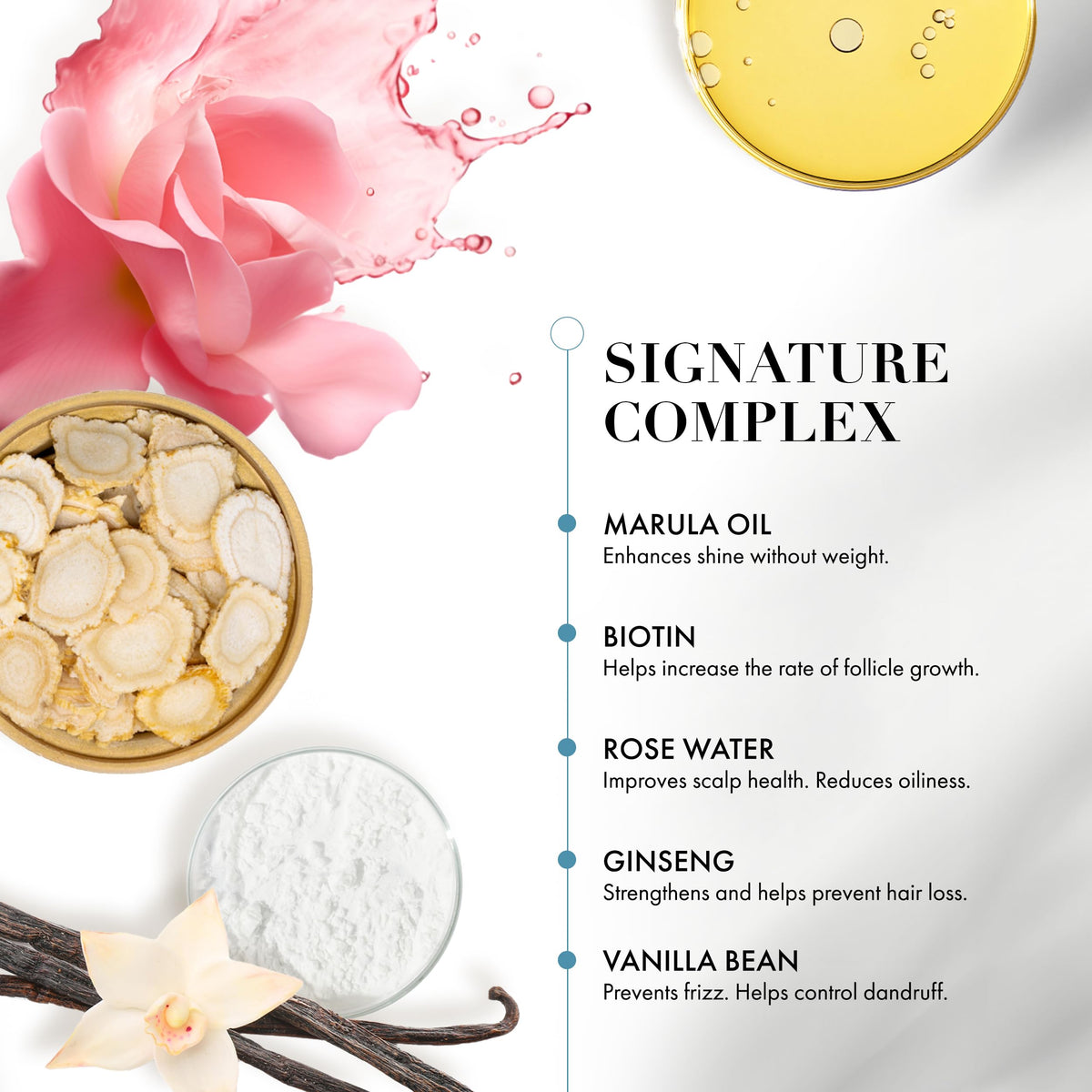 Active Ingredients :: ROSE WATER Mild, soothing and refreshing while supporting scalp health. WHITE TRUFFLE Aids in the natural renewal process. Essential fatty-acids that smooths and softens hair. MARULA OIL Nourishes hair while moisturizing. Protects through antioxidant, and anti-radicals.