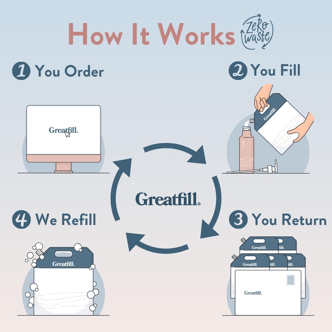 Greatfill Body Wash Refill is a sustainable solution for your daily cleansing routine. Made with Citrus and Fir, it offers a refreshing and invigorating experience while being environmentally friendly.