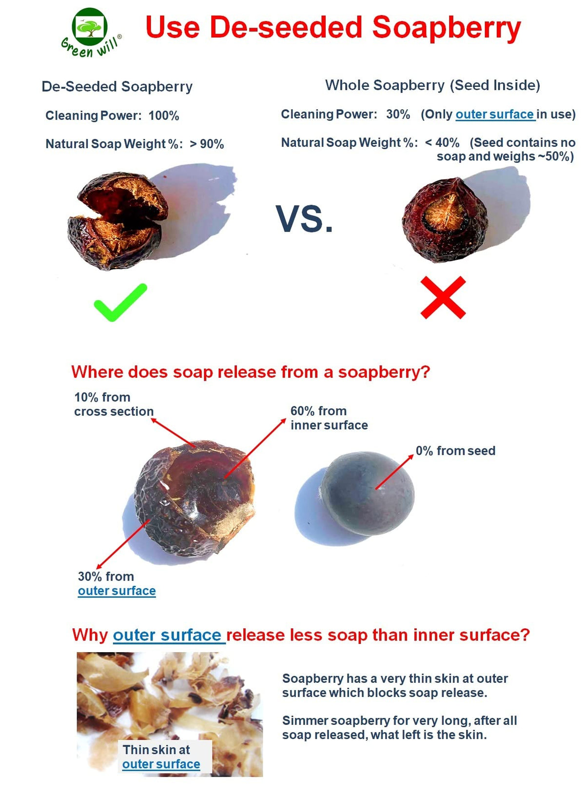 2.5 Pounds Greenwill Soap Berries / Soap Nuts - With Washbag and Brochure - Deseeded