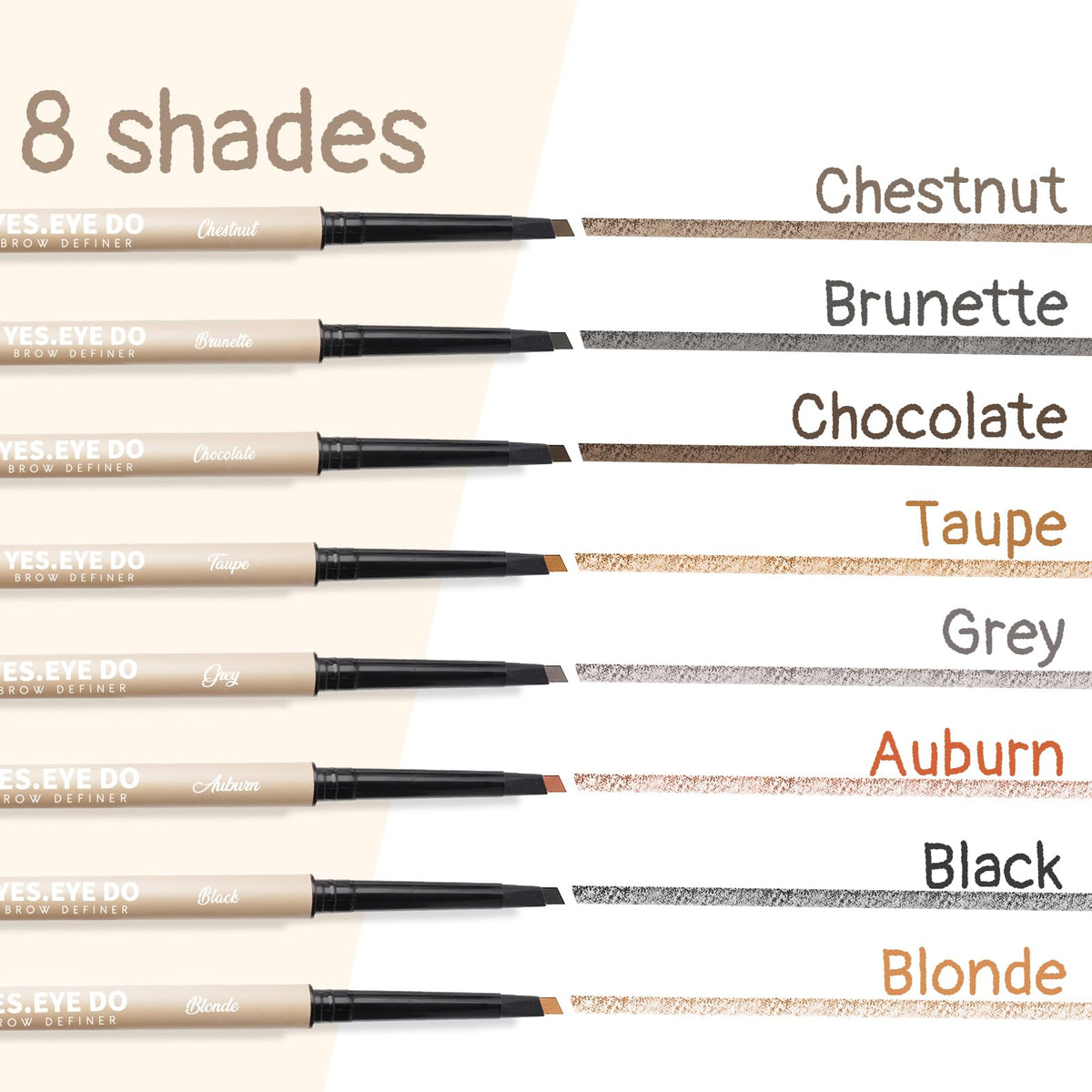 Grey Eyebrow Pencil by YES.EYE DO is a soft, retractable pencil designed for older women with gray hair. It offers long-lasting, waterproof color with hair-like strokes for natural-looking brows.