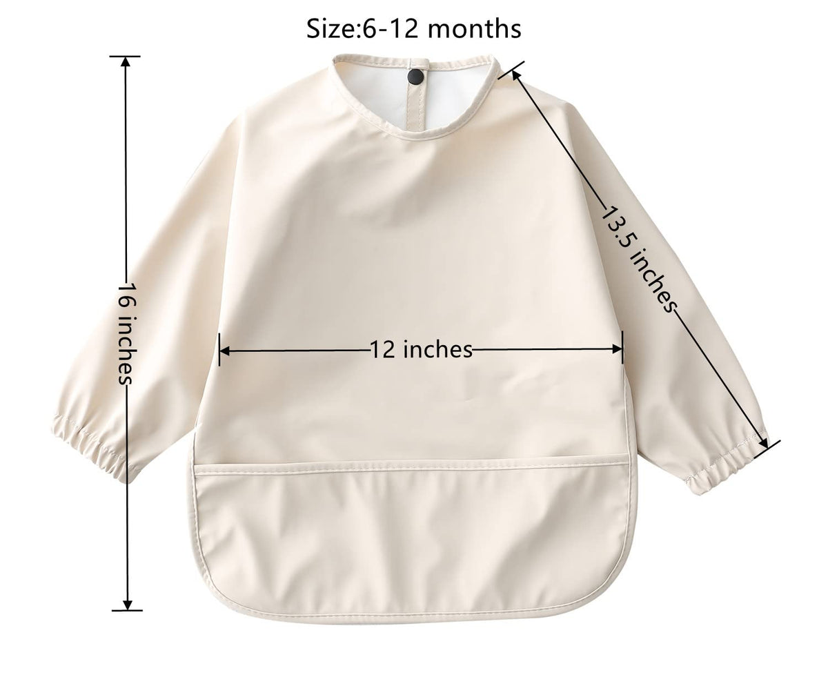 GZMM Waterproof Baby Bibs,Infant Toddler Long Sleeve Feeding Bib With Food Catcher,Wipe Clean & Washable