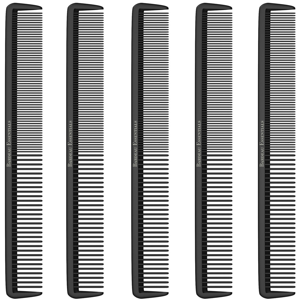 Styling Comb (5 Pack) - Professional 8.75†Black Carbon Fiber Anti Static Chemical and Heat Resistant Hair Combs for All Hair Types for Men and Women - by Bardeau Essentials