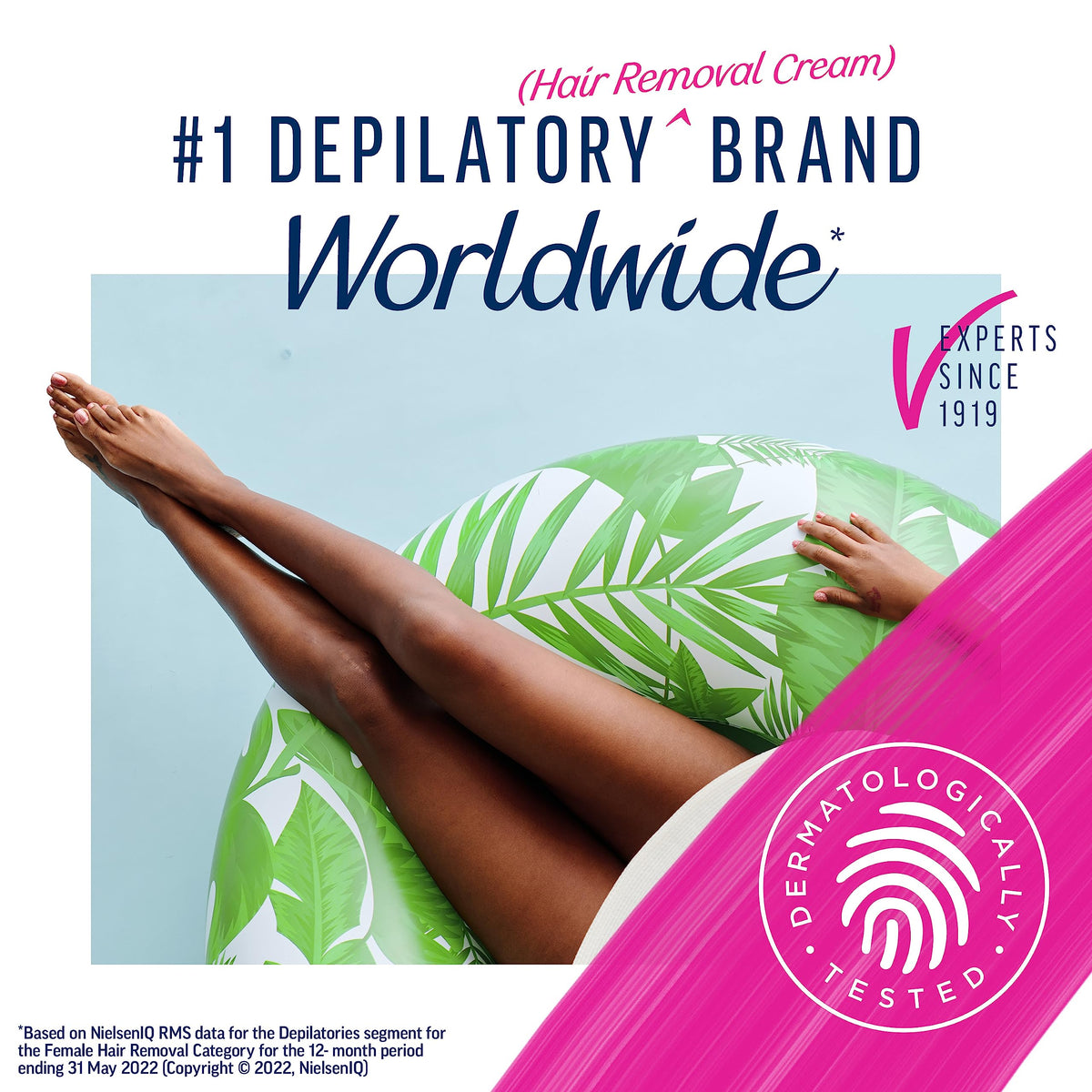 Beautifully Smooth Skin in Just 3 Steps Before using, please read pack precautions carefully. 1. Remove the plug from the pump and turn anticlockwise to unlock. Pump the Veet Cream onto the spatula or your hand and spread evenly to fully coat the hair you want to remove but do not rub in. And dont forget to wash any cream off your hands. 2. Leave the cream on your skin for 5 minutes, and then use the spatula to gently remove a small test area of cream. If the hair comes away easily, use the wider or narrower end of the spatula, depending on the body part, to remove the rest. If your hair is more stubborn, you can leave the cream on for up to 10 minutes in total but dont leave it any longer. 3. Rinse your skin thoroughly with water to remove cream completely, and then dry. Rinse the nozzle and the spatula thoroughly after use. Replace the plug after each use.