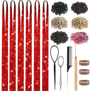 Add a touch of sparkle to your hair with the Hair Tinsel Kit for Girls. These fairy tinsel hair extensions offer 1800 strands of holographic, heat-resistant colored hair glitter, perfect for Christmas parties and festivals in a vibrant red shade.
