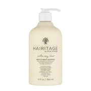 Hairitage Gentle Daily Hydrating and Moisturizing Shampoo is tailored for dry hair, enriched with Jojoba Oil and Aloe Vera. This ultra-mild and moisture-rich formula improves dry, brittle strands in a 13 fl oz bottle.