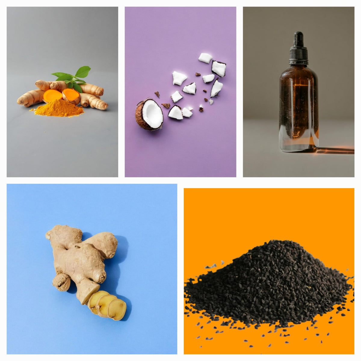 Active Ingredients :: Ginger extract, turmeric root extract, black seed oil, flaxseed oil, keratin, castor seed oil, squalane, vitamin E, lactic acid, vitamin_e, lactic_acid