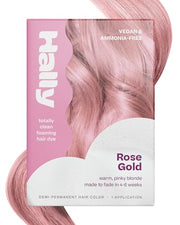 Hally Hair Color Cloud Hair Dye in Rose Gold offers a demi-permanent foam color for women and men. This vegan hair dye kit provides a mess-free and long-lasting coloring experience, washing out in 4-6 weeks.