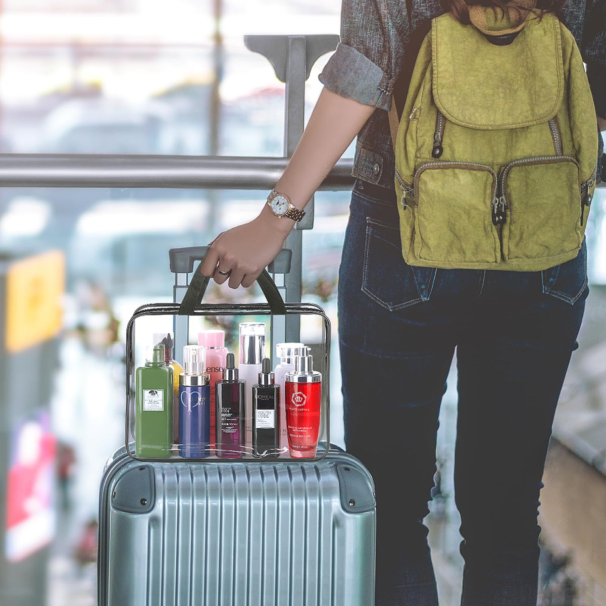 Organize your makeup essentials with HAOGUAGUA 2-Piece Large Clear Makeup Cosmetic Organizer Bag. These transparent plastic tote bags are waterproof and perfect for storing your handbag essentials in style.