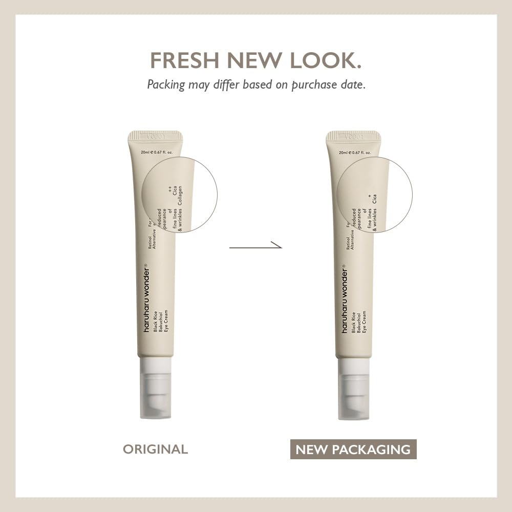 HARUHARU wonder Black Rice Bakuchiol Eye Cream, Smooths Fine Lines & Crow’s Feet, Reduces Puffiness & Dark Circles, Lightweight Day and Night Care (Duo Set)
