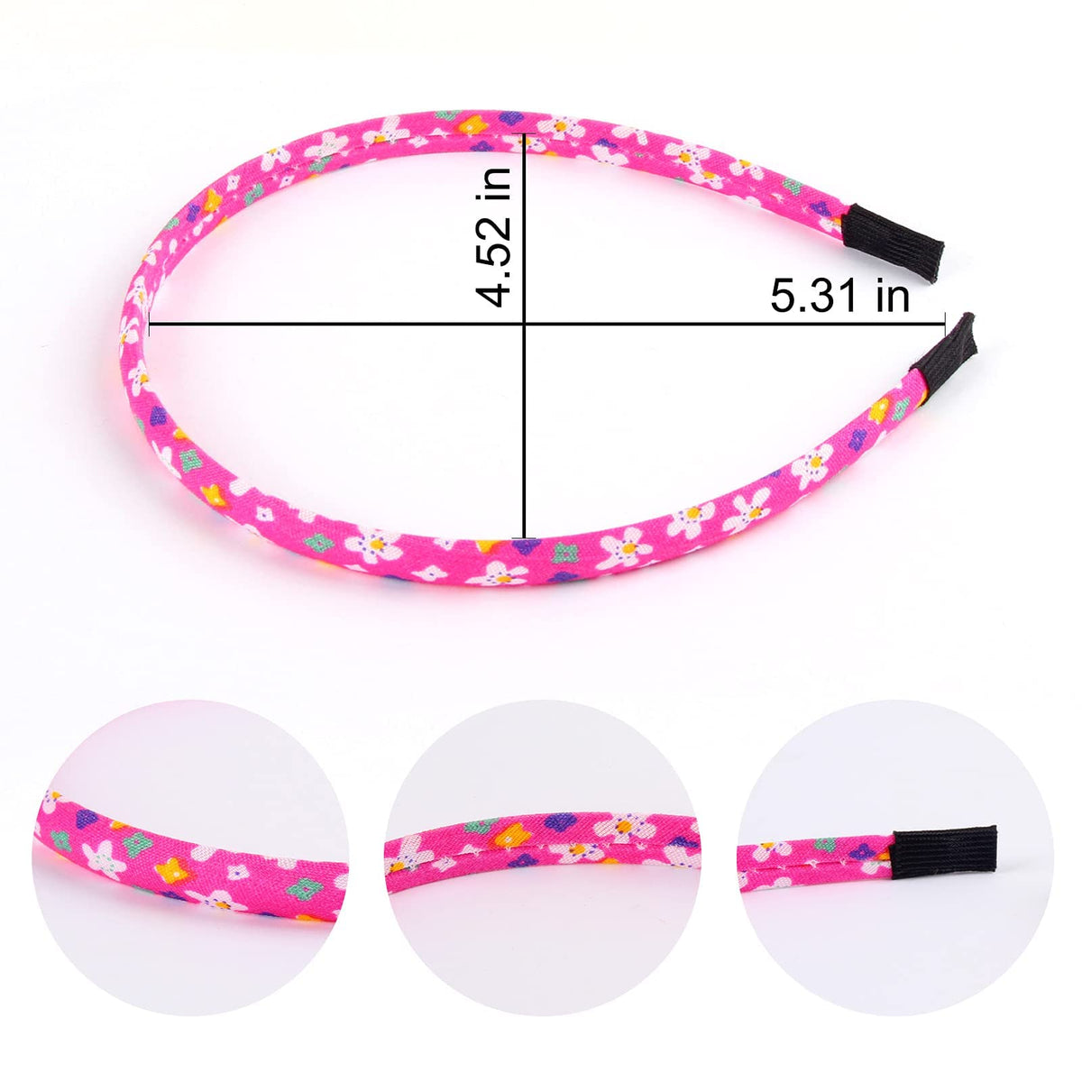 Headbands for Girls 12Pcs Thin Head Bands for Kids Children Hairbands for Toddler Floral Cloth Fabric Covered Headband Birthday Party Favors