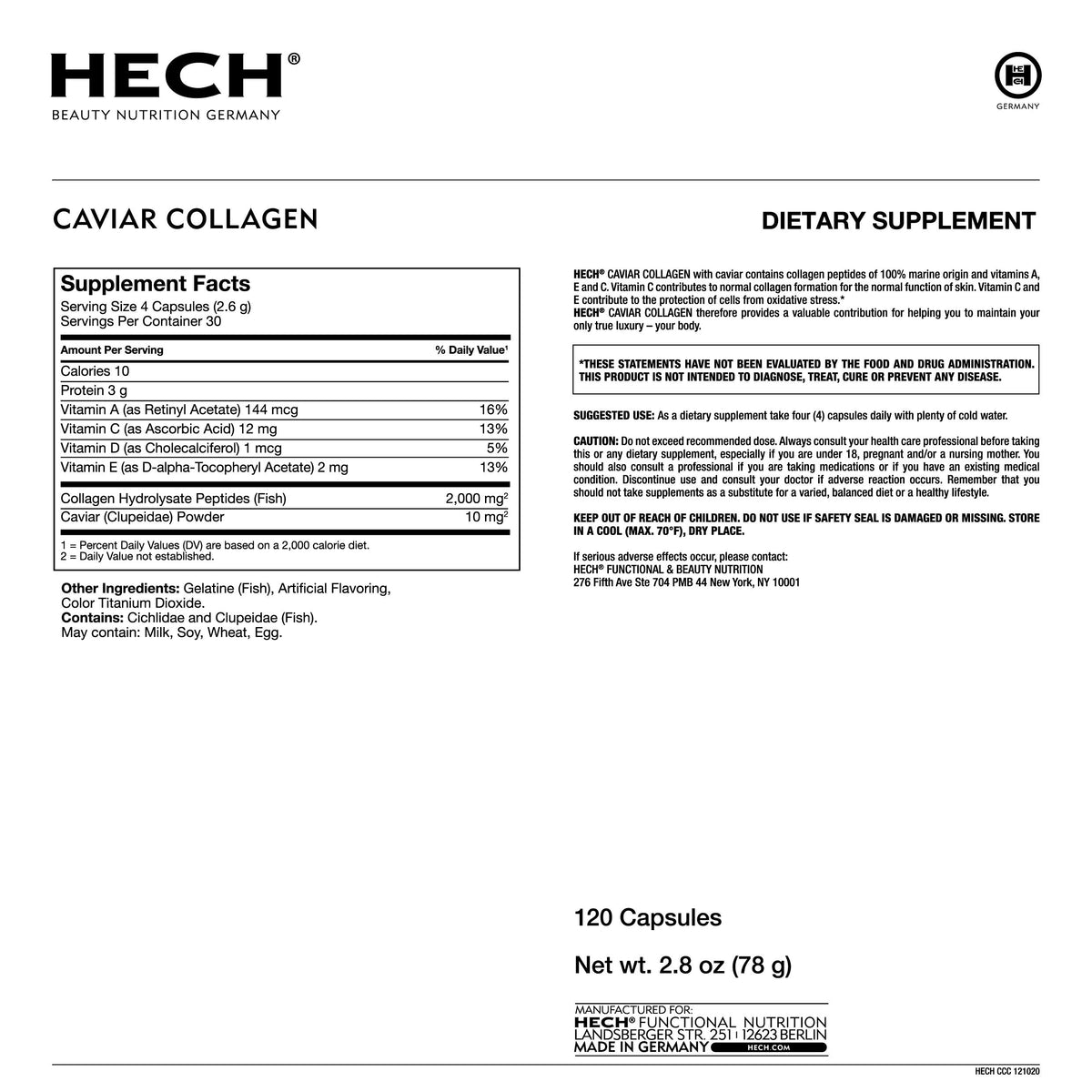 HECH Caviar Collagen Capsules - Beauty Supplement with 2,000 mg Marine Collagen Peptides, Caviar Extract and Vitamin Complex
