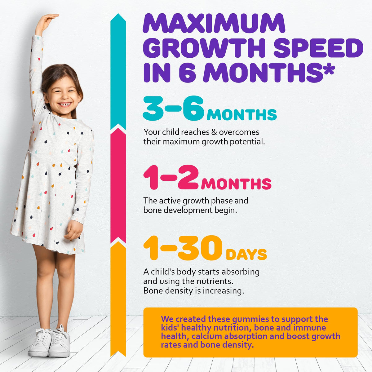 Height Growth Gummies for Kids - Growth Vitamins for Teens Height Growth Supplement - Height Growth for Kids with Calcium, Vitamin D, C, K2, Magnesium & Zinc - Natural Height Growth Maximizer - 60 PCS