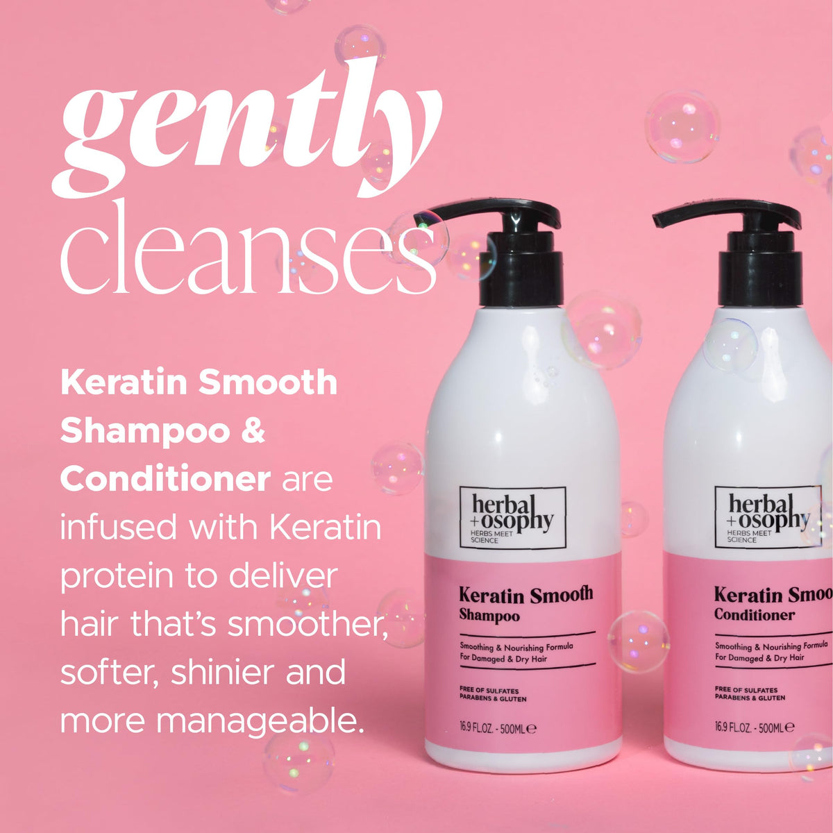 Herbalosophy Keratin Shampoo & Conditioner Set, Nourishing & Moisturizing Formula for Damaged & Dry Hair, Highly Hydrate & Repair for Color Treated Hair, Sulfate,Parabens & Gluten Free, 2 x 16.9 Fl Oz