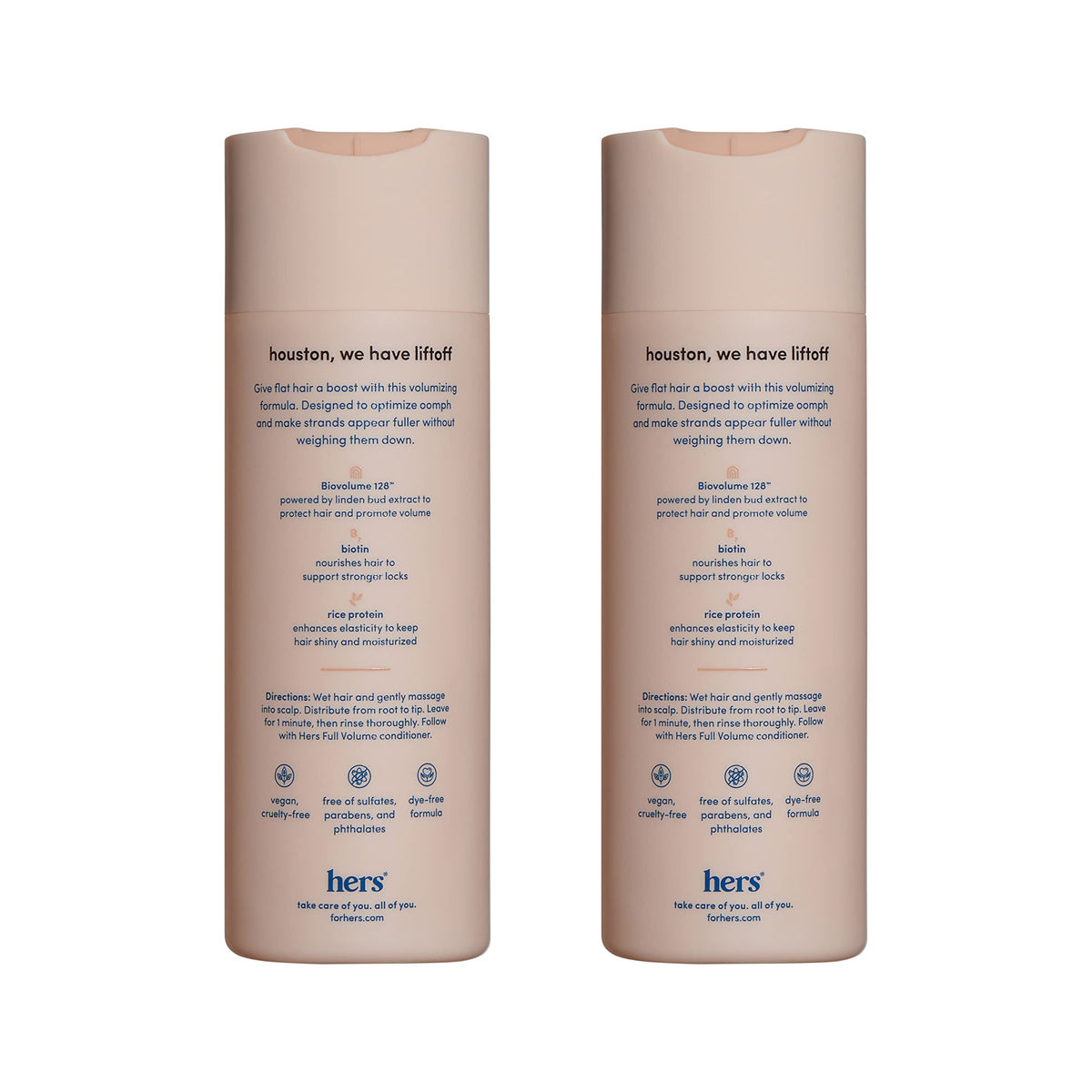 hers Full Volume Shampoo, in a convenient 2-pack, is a volumizing powerhouse for women. Enriched with biotin, this shampoo adds lightweight volume, shine, and bounce to your hair. Experience the refreshing Coastal Cedar Citron scent in each 6.4 fl oz bottle.