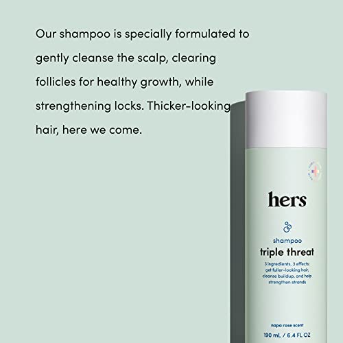 hers Triple Threat Shampoo for Women, 2 Pack - Thickening, Moisturizing, Reduces Shedding - Color Safe Hair Loss Shampoo with Biotin - Napa Rose - 2 x 6.4 fl oz