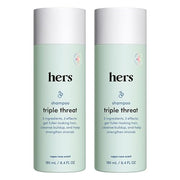 hers Triple Threat Shampoo for Women is a powerhouse formula that thickens, moisturizes, and reduces shedding for healthier hair. Infused with biotin and safe for colored hair, this shampoo nourishes and strengthens your locks.
