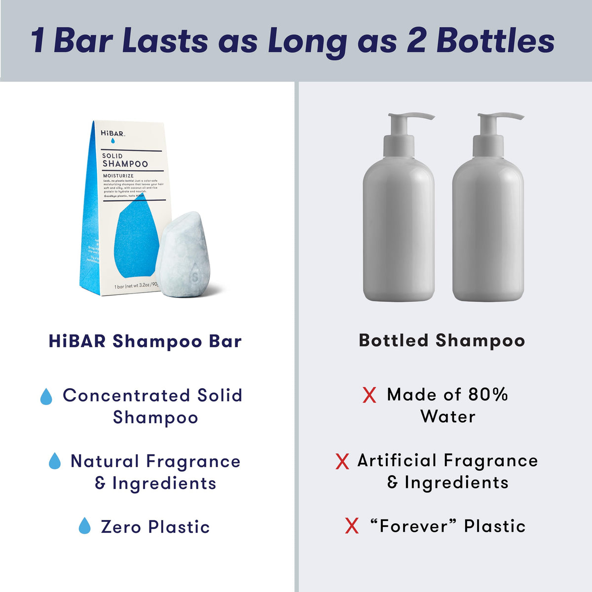 HIBAR - Moisturize Shampoo Bar - For Dry, Frizzy Hair - Deeply Nourishing & Hydrating - With Coconut Oil & Vitamin B5 - Plastic-Free - Soap, Paraben & Sulfate-Free - Color Safe & Vegan -1 Solid Bar