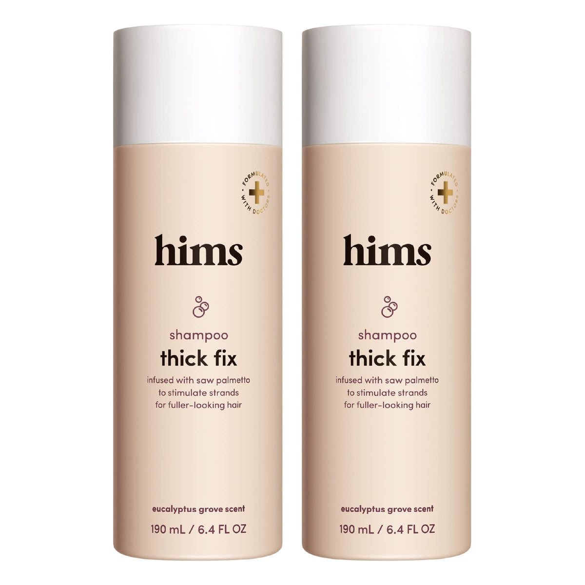 Ingredients: hims thick fix hair shampoo for thinning hair with saw palmetto to add volume and moisture, no parabens or sulfates, vegan and cruelty free, 2 pack, 6.4oz