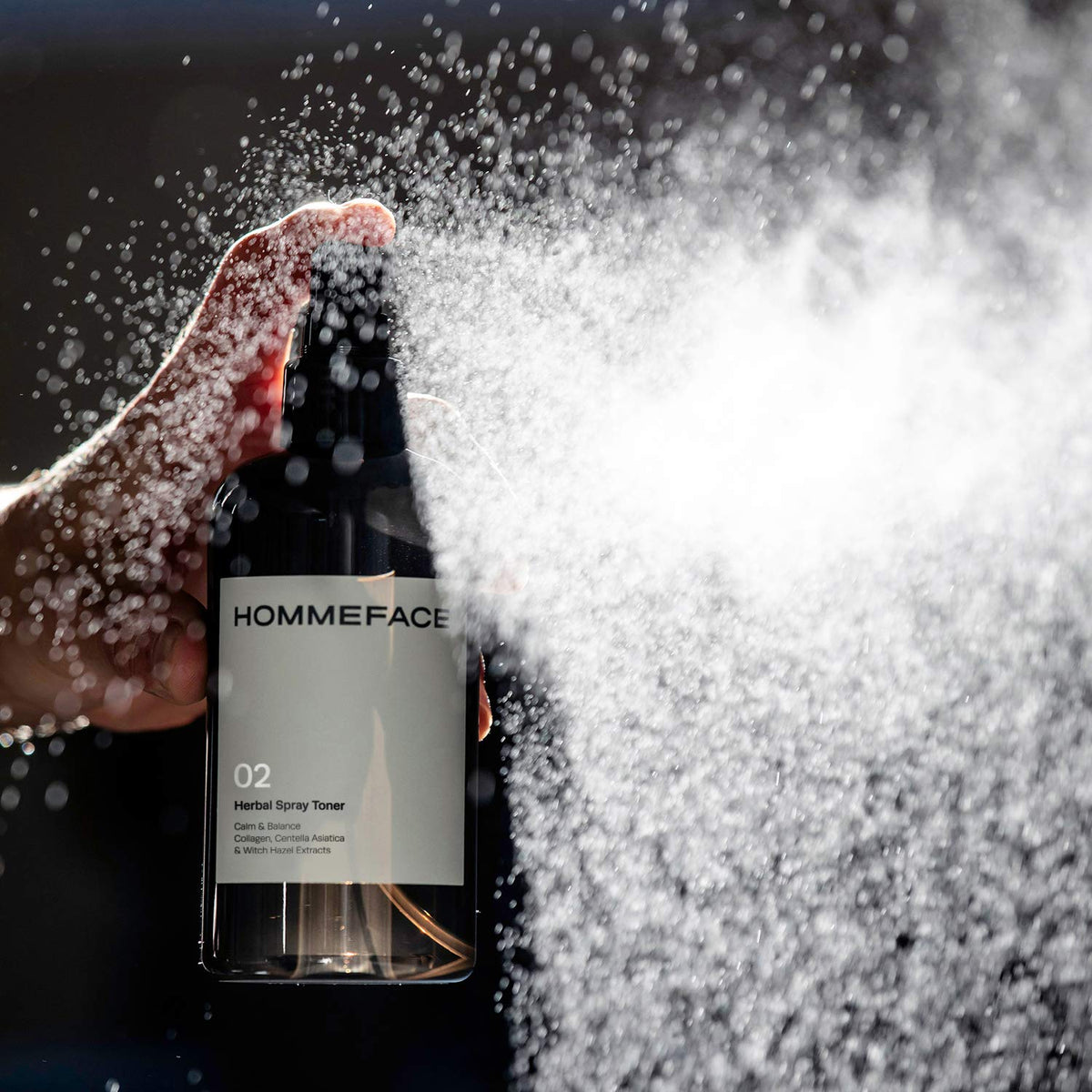 HOMMEFACE Men’s Herbal Spray Face Toner is a refreshing alcohol-free facial mist designed to hydrate and balance the skin. Enriched with Witch Hazel and CICA Extract, this toner offers anti-aging benefits and is perfect for aftershave use. Suitable for all skin types.