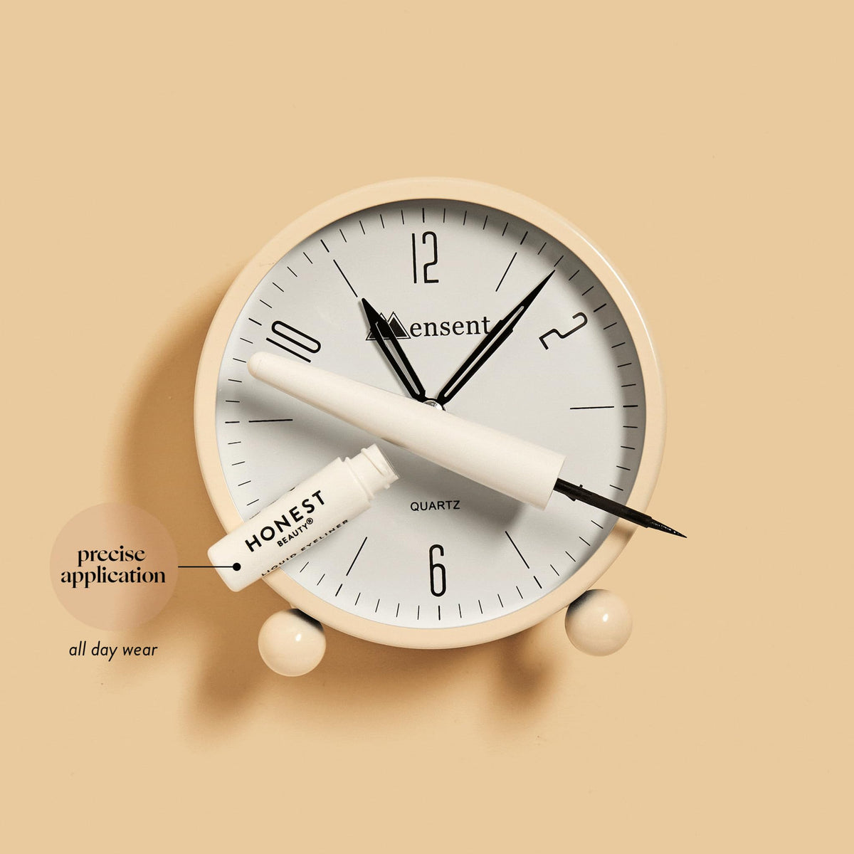 Define your eyes with Honest Beauty Longlasting Liquid Eyeliner. This smudge-proof and flake-proof eyeliner offers precise application for a bold and long-lasting look. Hypoallergenic, vegan, and cruelty-free.