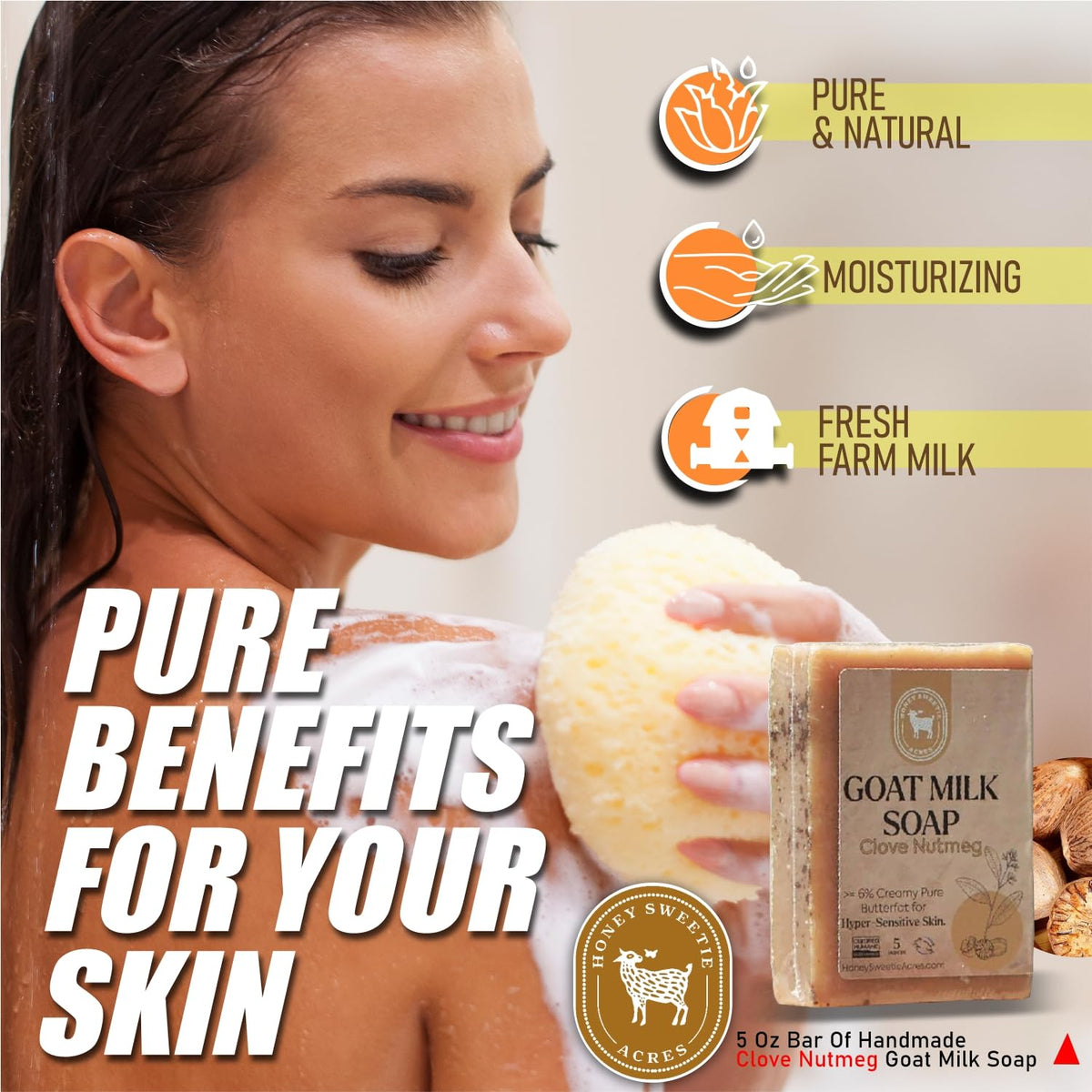 Honey Sweetie Acres Clove Nutmeg Goat Milk Soap - Handmade 5 oz Bar, Made with Natural Ingredients, Moisturizing & Gentle, Made in the USA