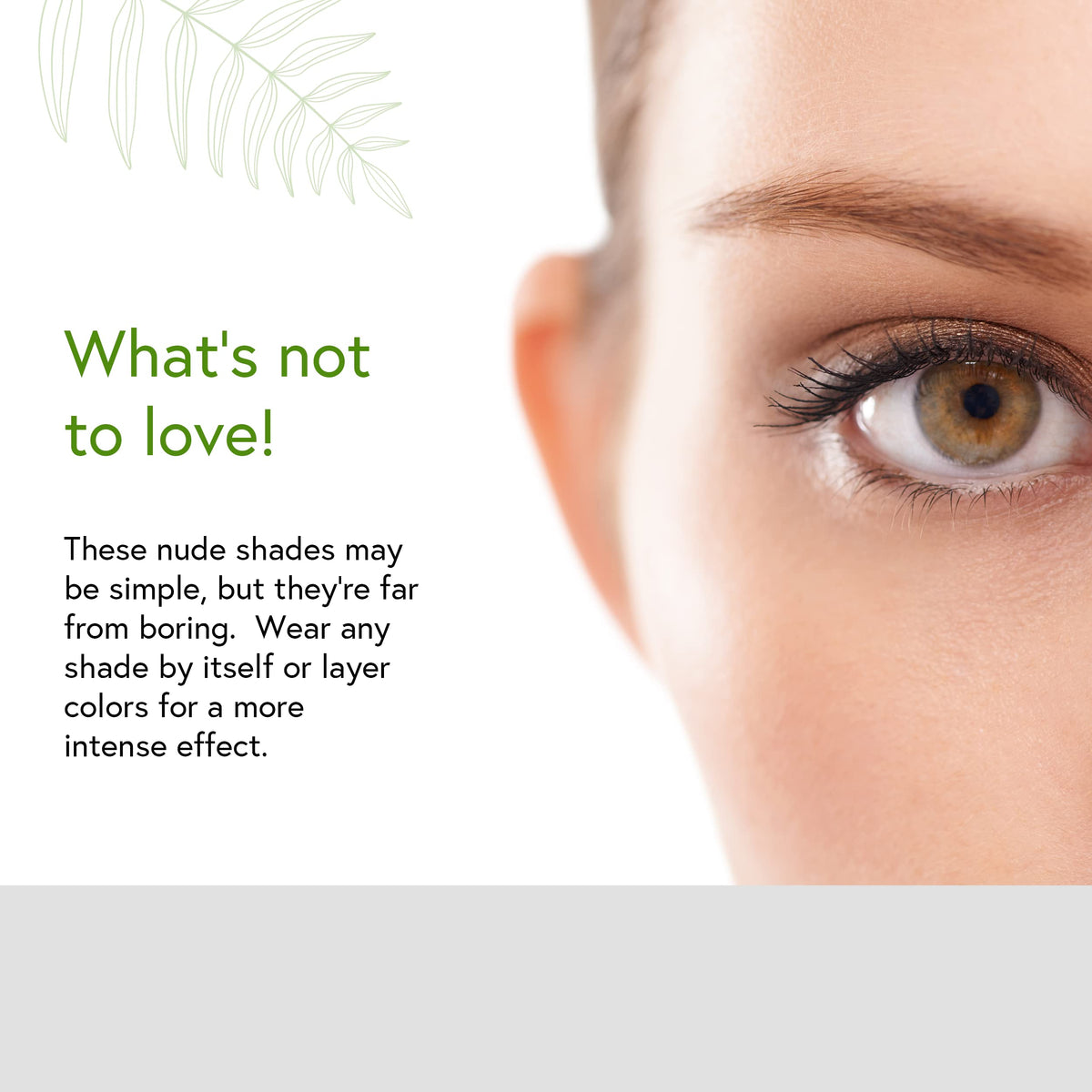 Apply the eyeshadow directly to bare eyelids for subtle definition or blend and layer for a more intense look and customized style