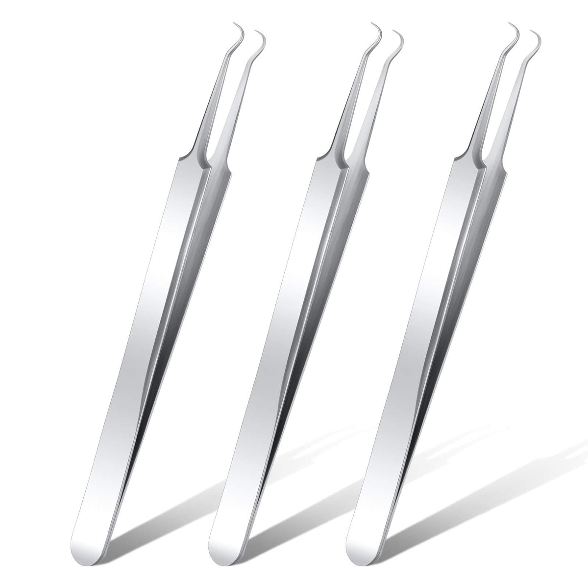 3 Pieces Blackhead Tweezers Acne Blemish Stainless Steel Blemish Extractor Tool for Remove Blackhead Acne Whitehead Pimple Bend Curved Tweezer Skin Blackhead Remover Tools