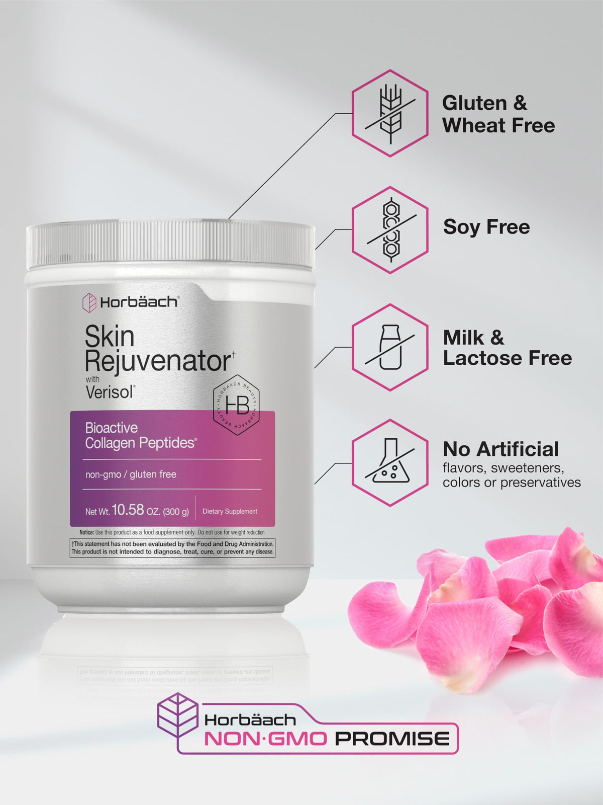 Horbäach Skin Rejuvenator with Verisol 10.58 oz | Bioactive Collagen Peptide Powder | Types I and III | Non GMO, Gluten Free Supplement