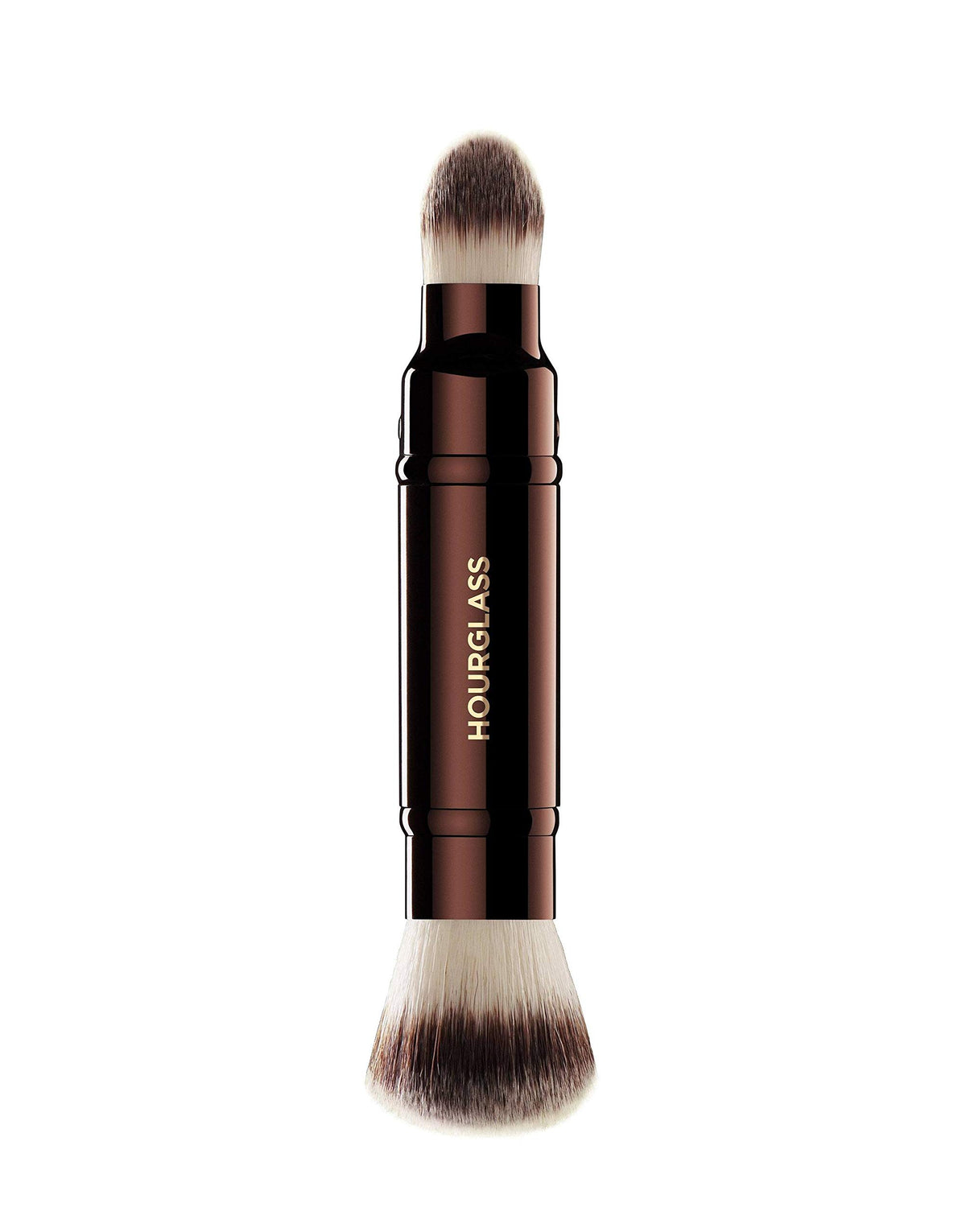 Short Product Description :: The Hourglass Retractable Double-Ended Complexion Brush is a portable brush that includes applicators for both foundation/blush and concealer.