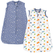 Hudson Baby Unisex Baby Premium Quilted Sleeveless Sleeping Bag and Wearable Blanket, Space 2-Pack, 12-18 Months