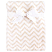 Hudson Baby Unisex Baby Silky Plush and Coral Fleece Blanket, Tan Chevron, 30x40 inches
