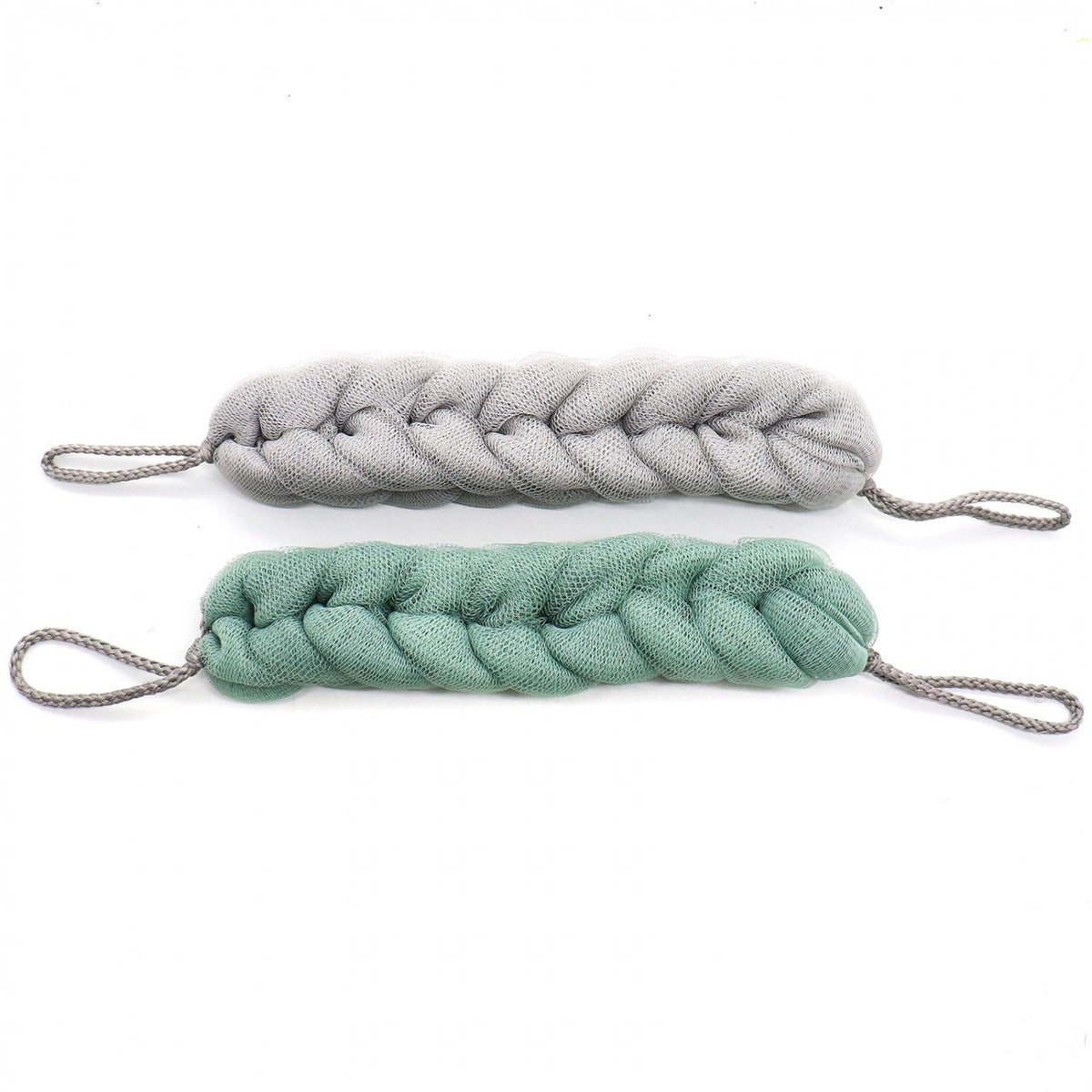 Huele 2 Pcs Exfoliating Bath Sponge Shower Pouf Loofah Back Scrubber Mesh Strap Skin Washer With Rope Handles