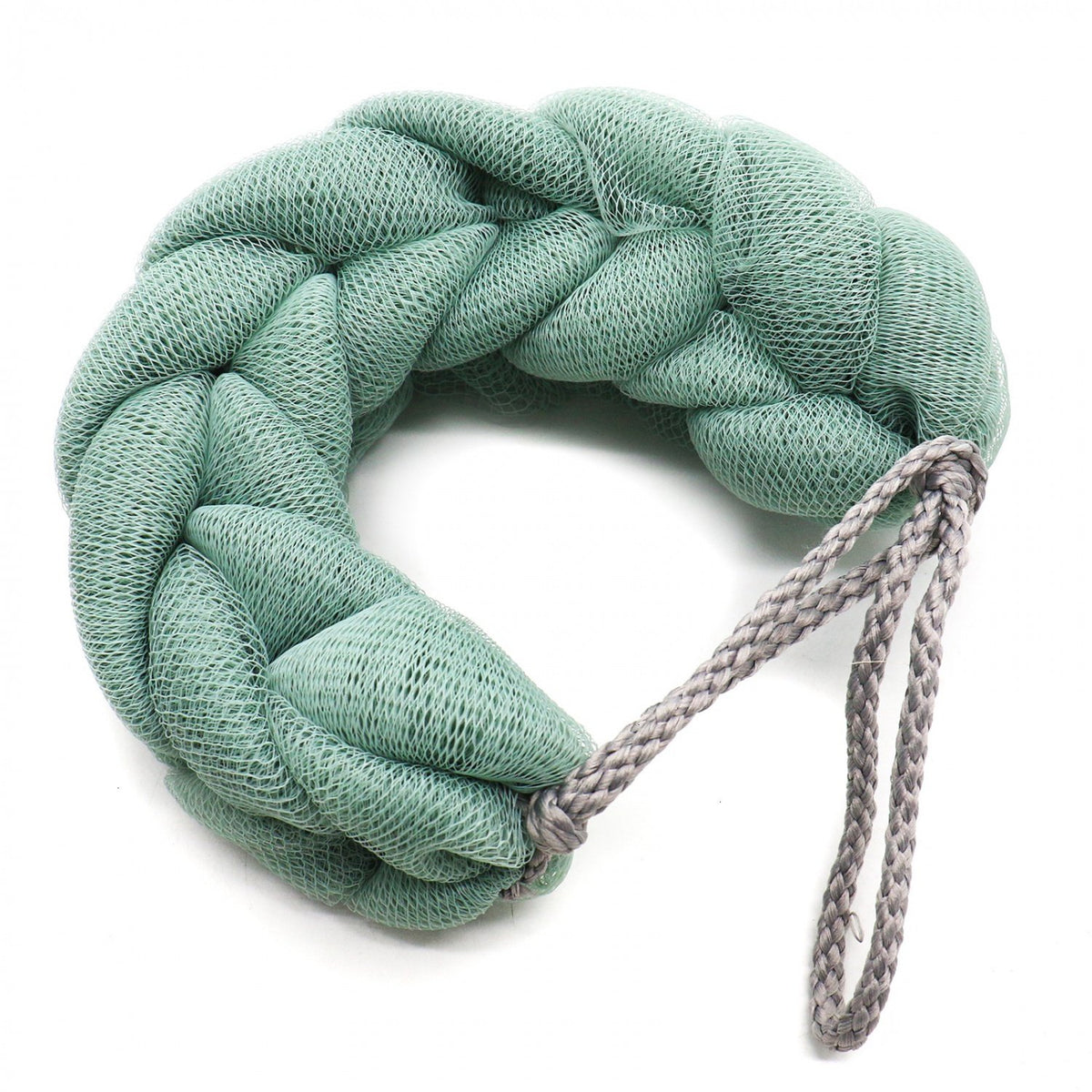 Huele Exfoliating Bath Sponge Shower Pouf Loofah Back Scrubber helps you achieve smooth and radiant skin with ease. The mesh strap and rope handles make it convenient to use in the shower.