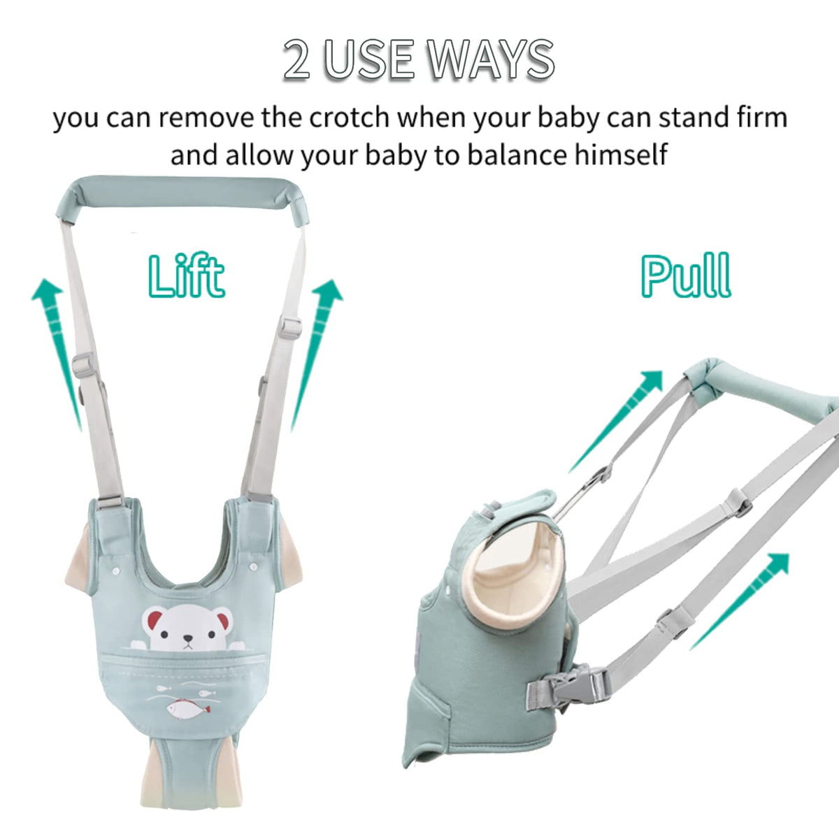 Huifen Baby Walking Harness, Handheld Kids Walker Helper with Detachable Crotch Adjustable Walker Harness Assistant Belt Baby Learning Walk Toddler Infant Walker 9-24 Months (Green)