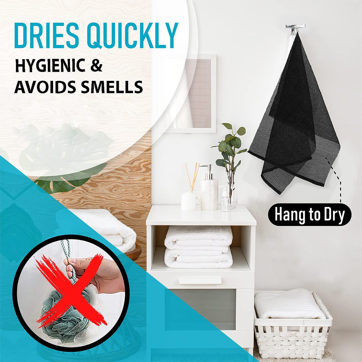 Exfoliating Body Washcloth Variety Pack (3pc) - Soft, Medium & Hard - Nylon Body Scrub Cloth (11.8 X 35.4) - Ideal Bath Shower Back Scrubber for Men & Women - Enhances Skin Beauty