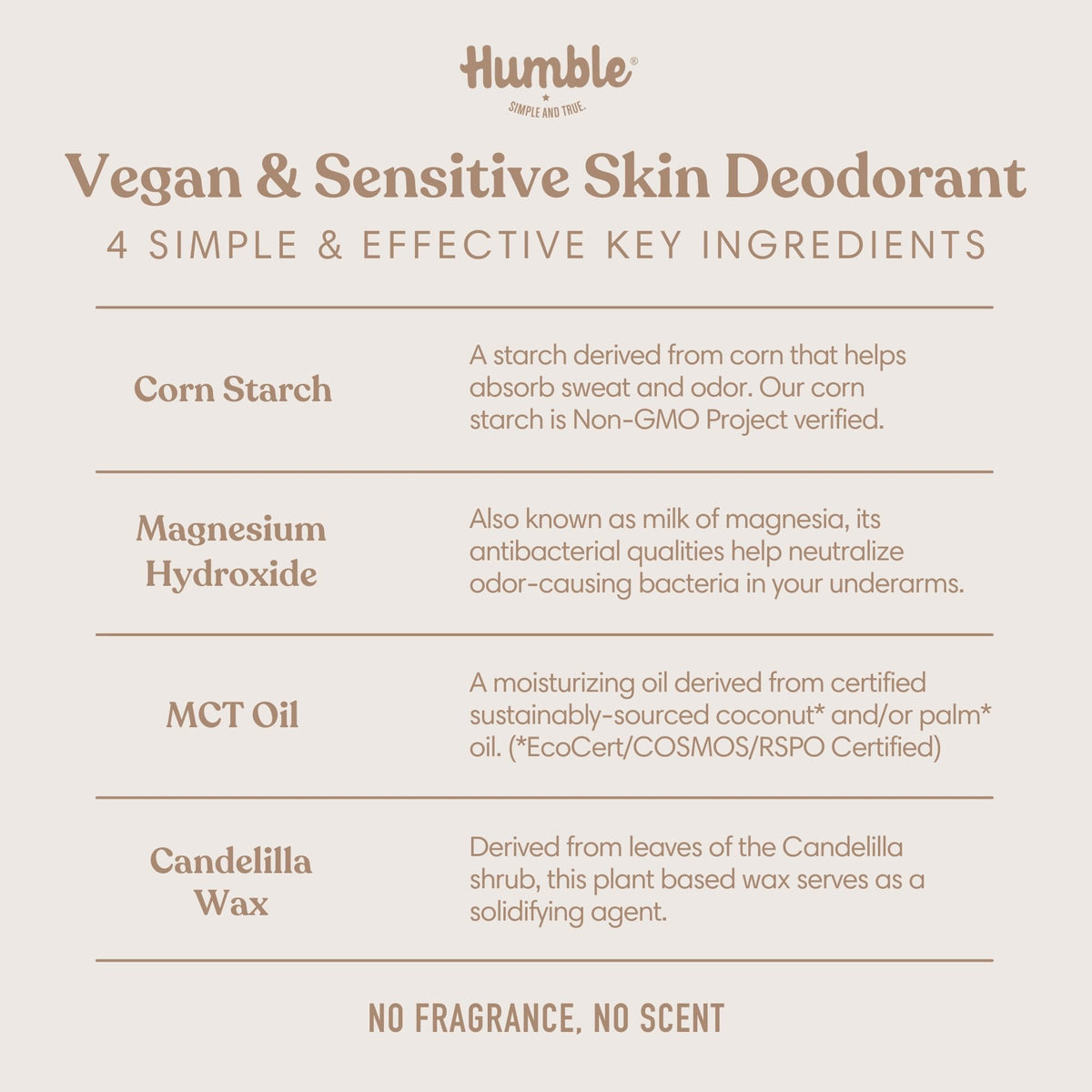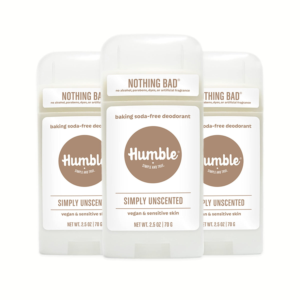 HUMBLE BRANDS Aluminum-Free Deodorant, Vegan and Cruelty- free, Formulated for Sensitive Skin, Simply Unscented, 2.5 Ounce (Pack of 3)