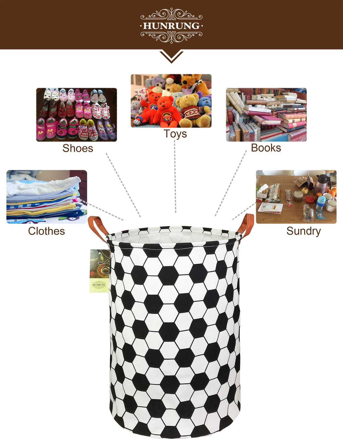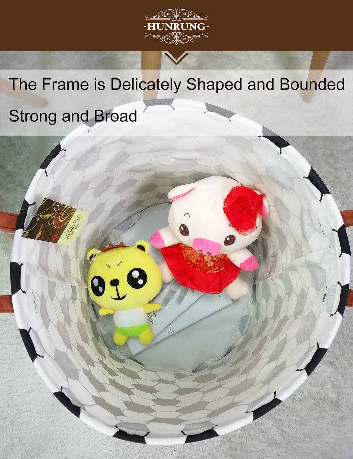 HUNRUNG Laundry Hamper,Large Canvas Fabric Lightweight Storage Basket Toy Organizer Dirty Clothes Collapsible Waterproof for College Dorms, Children Bedroom,Bathroom(Roud-Football)