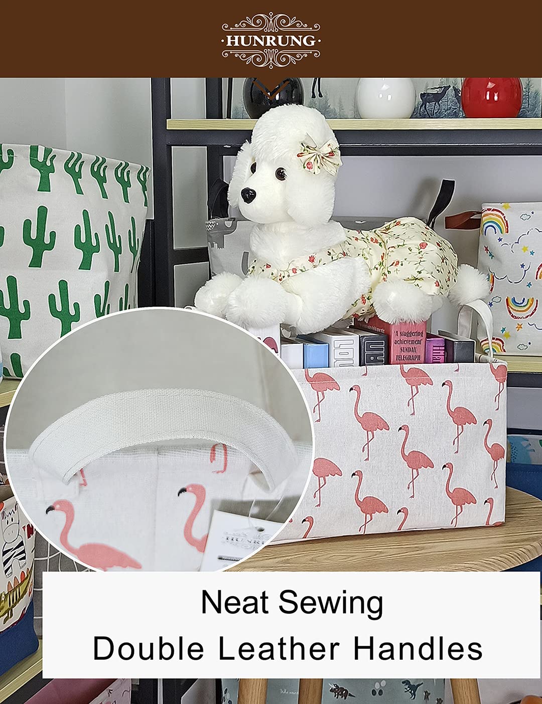 HUNRUNG Rectangle Storage Basket Cute Canvas Organizer Bin for Pet/Children Toys, Books, Clothes Perfect for Rooms/Playroom(Rectangle Flamingo)
