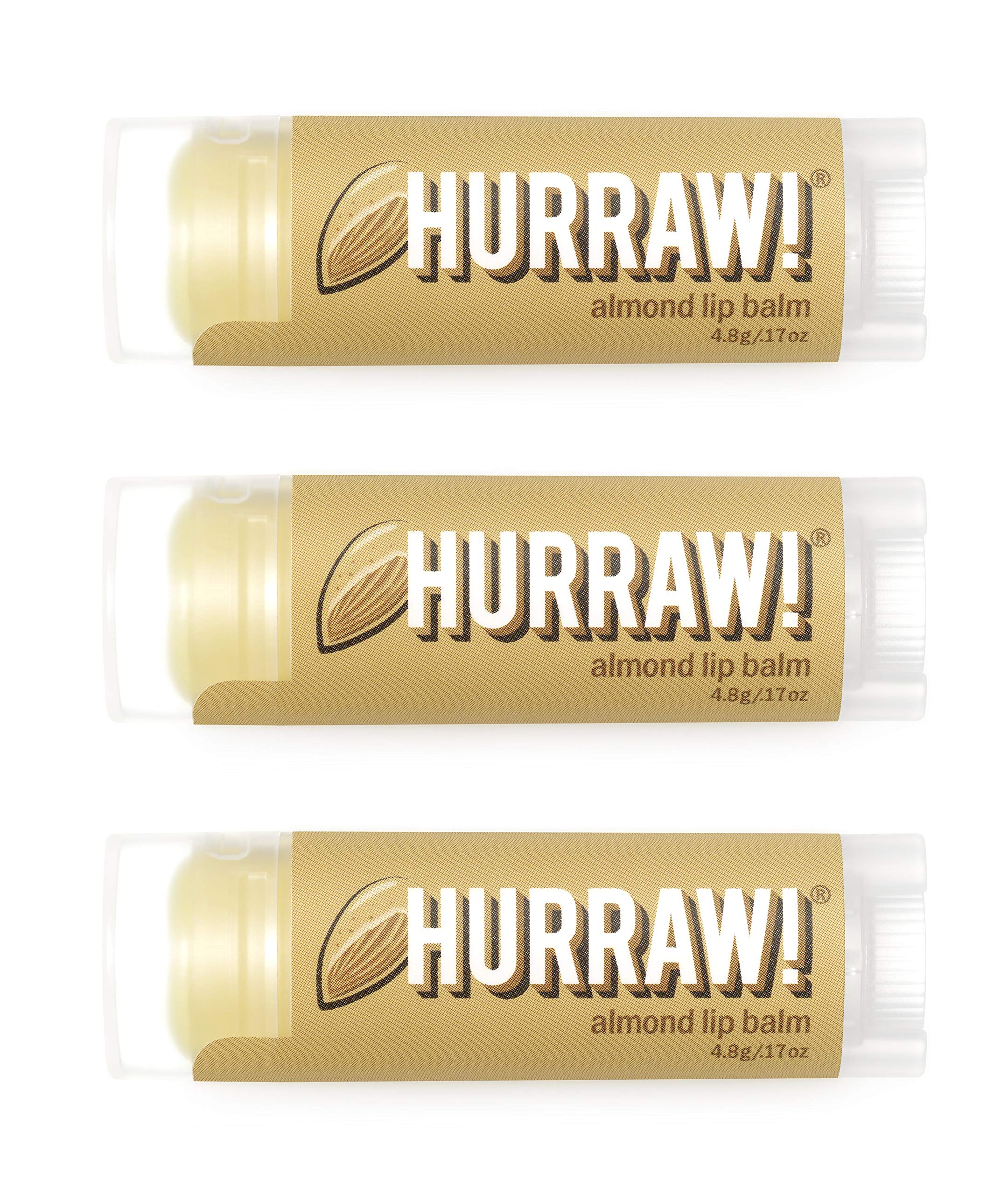 Hurraw! Almond Lip Balm, 3 Pack: Organic, Certified Vegan, Cruelty and Gluten Free. Non-GMO, 100% Natural Ingredients. Bee, Shea, Soy and Palm Free. Made in USA