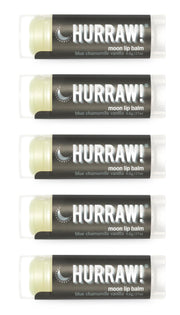 Hurraw! Moon Night Treatment (Blue Chamomile, Vanilla) Lip Balm, 5 Pack: Organic, Certified Vegan, Cruelty and Gluten Free. Non-GMO, 100% Natural Ingredients. Bee, Shea, Soy and Palm Free. Made in USA