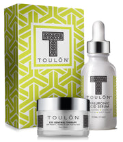 Revitalize your skin with Hyaluronic Acid Anti-Aging Skin Care Kits. This set includes a Hyaluronic Acid Serum and Eye Cream designed to combat dark circles and puffiness. A perfect natural skincare gift for both women and men.