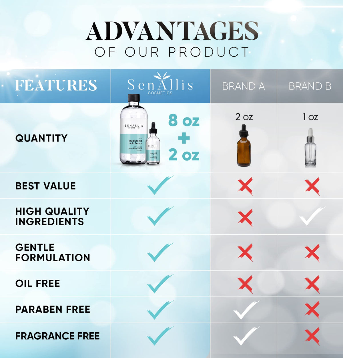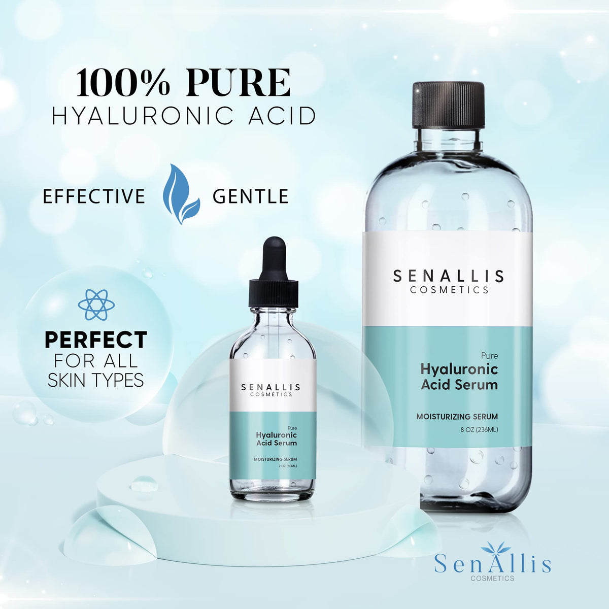 Hyaluronic Acid Serum 8 fl oz And 2 fl oz, Made From Pure Hyaluronic Acid, Anti Aging/Wrinkle, Ultra-Hydrating Moisturizer That Reduces Dry Skin Manufactured In USA