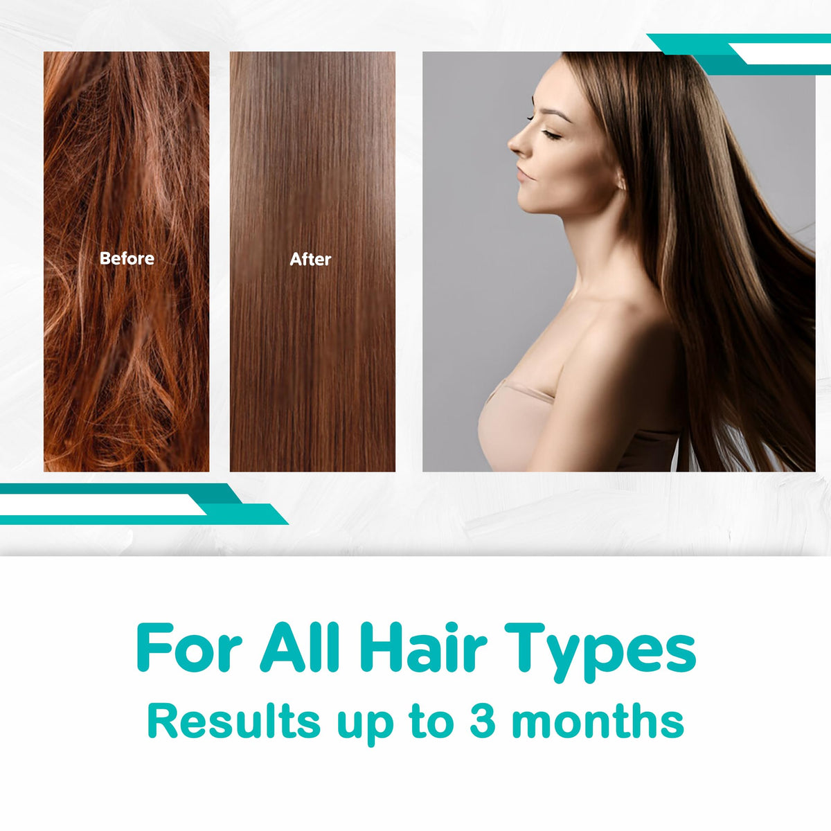 Directions :: 1. Wash your hair with the deep cleansing shampoo. Do not use any conditioner or mask. 2. Dry your hair at least 80% before applying the product. 3. Apply the product to the entire length, leaving a one-finger gap from the roots. 4. Leave it on for 60 to 90 mins. 5. Rinse all the product from the hair and dry it 100% with a hot dryer. 6. Finish by flat ironing each strand 15 to 20 times. *We recommend waiting up to 48 hrs before washing your hair again after the application process.