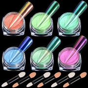 Create stunning nail art with Ice Transparent Aurora Nail Powder by KISSBUTY. This multi-chrome powder set offers 6 vibrant colors with an iridescent effect for mesmerizing nail designs.