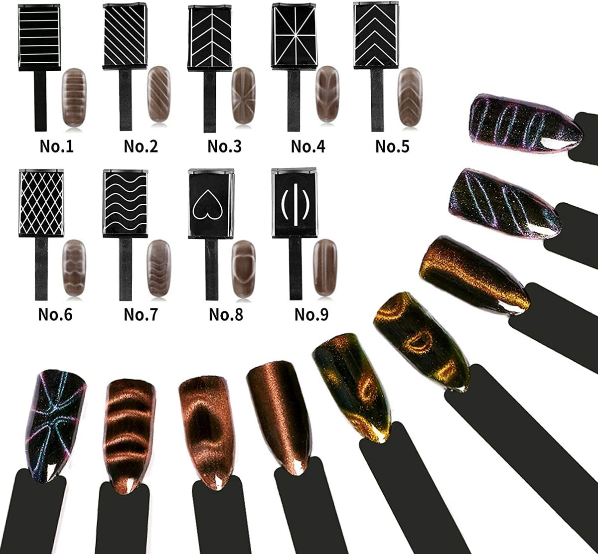 11 Piece Magnet Nail Art Polish Tool Set, Cat Eye Gel Polish 3d Gel Nails Cat Eye Plastic Tool-Suitable for DIY 3d Magnetic, Salon, Studio or Home