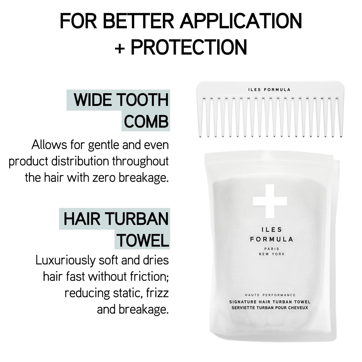 Iles Formula Limited Travel Edition Hair Care Set with Mini Shampoo, Conditioner, Finishing Serum, Comb, & Absorbent Turban Hair Towel, Travel-Friendly