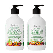ILLUVISSE Batana Oil Shampoo and Conditioner Set with Organic Batana & Rosemary Oil promotes hair growth and restoration with a thickening formula enriched with organic ingredients suitable for both women and men.