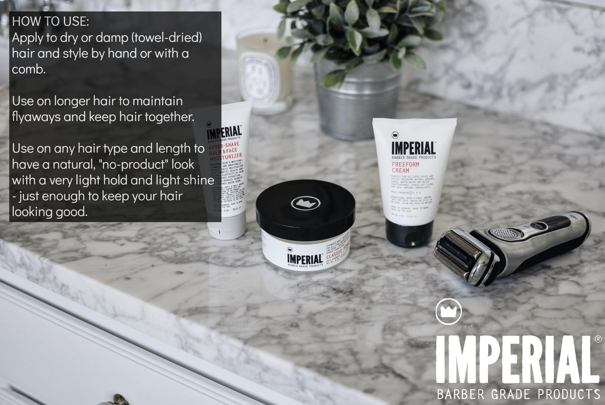 Create freeform styles with Imperial Barber Freeform Cream. This 4 oz cream offers flexibility and control for shaping your desired hair look effortlessly.
